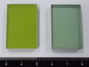 左)Ce/Cr/Nd:YAG ceramic 、右)従来のCr3+/Nd:YAG ceramic